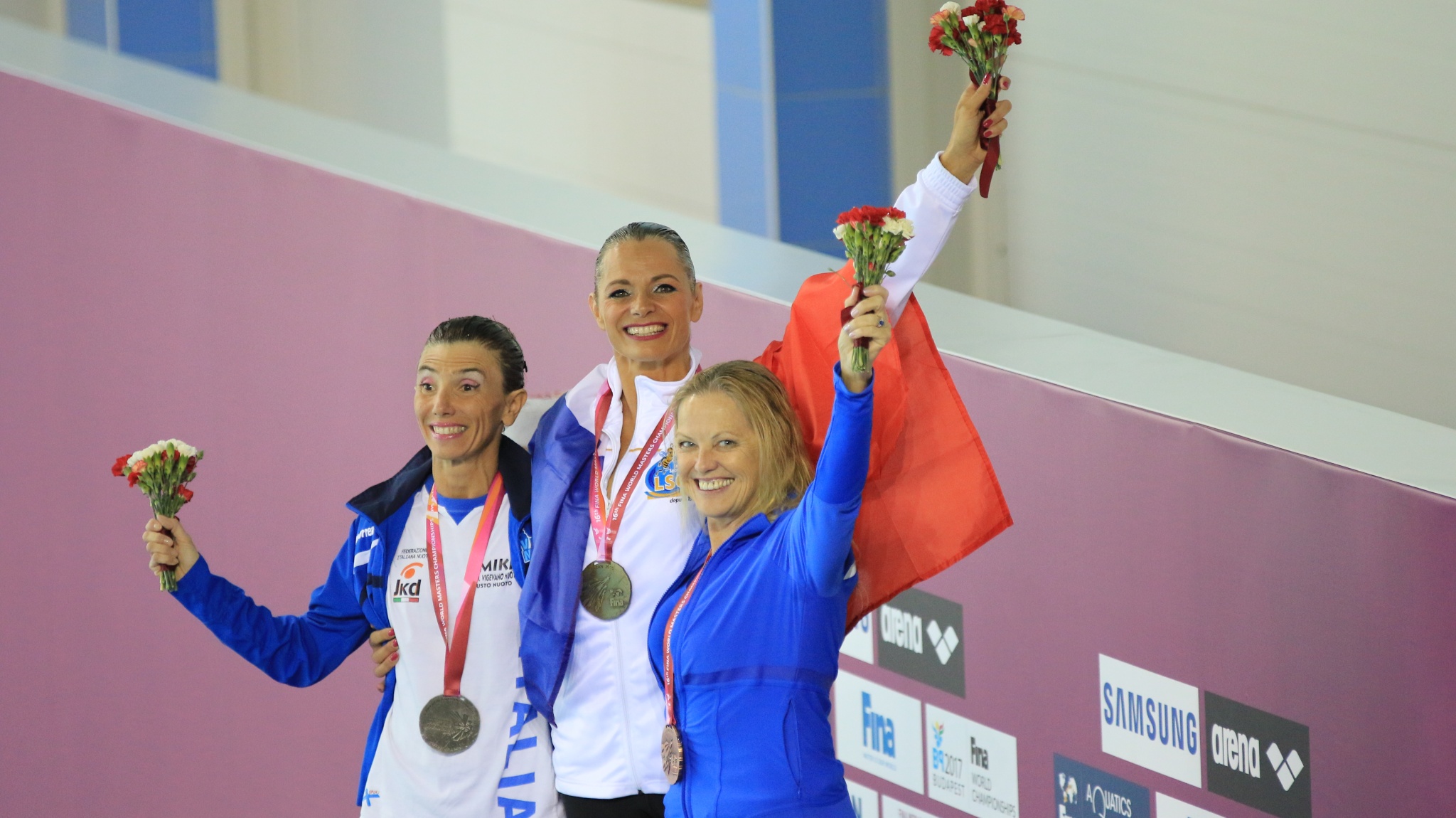 Il manquait un titre à celle qui a popularisé la natation synchronisée en France dans les années 1980, celui de championne du monde. C’est chose faite depuis juillet 2015 et sa médaille d’or obtenue dans la catégorie 50-59 ans à Kazan, en Russie.