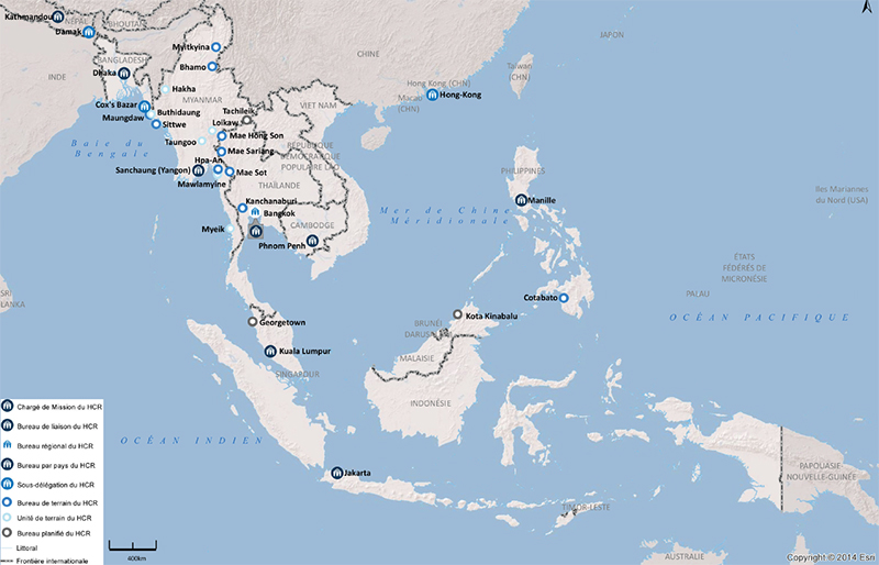 Carte de la présence du Haut Commissariat aux réfugiés en Asie – Crédit photo : UNHCR