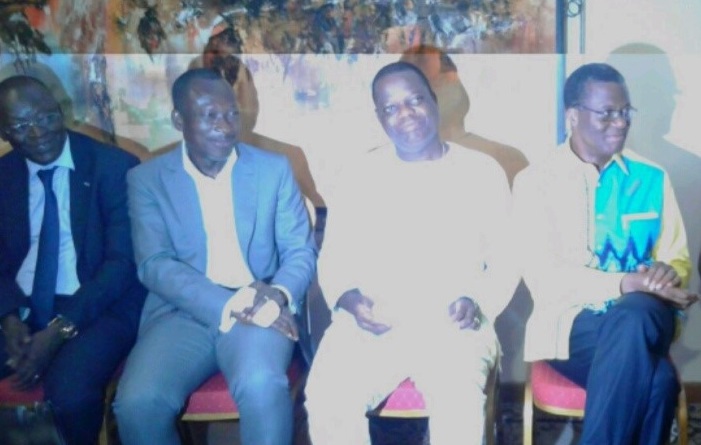 De gauche à droite, A. Bio Tchané, Patrice Talon, Sébastien Ajavon, P. Irénée Koupaki – Crédit photo : Luck Erick