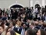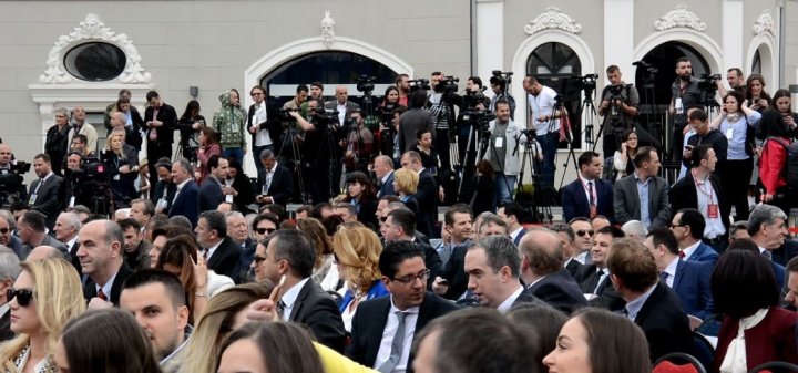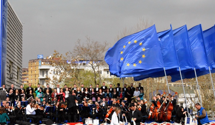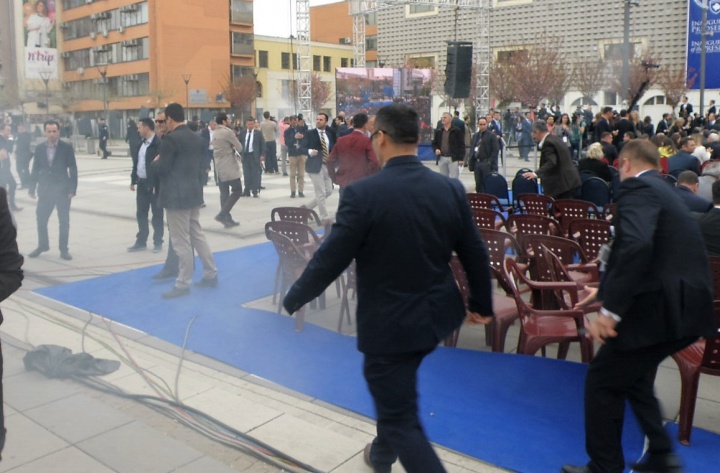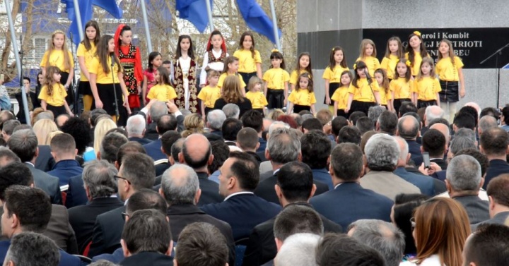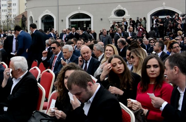 Seule ombre au tableau, bien qu’elle soit surtout un signe de vigueur démocratique : l’opposition du parti Autodétermination (Vetevendosje, dit « VV ») et alliés a réussi à lâcher deux cannettes de gaz lacrymogène peu avant le discours, obligeant à l’évacuation de l’orchestre et du chœur pendant une dizaine de minutes. Personne n’a montré d’exaspération excessive d’autant que le chahut cessa le temps du discours. On s’attendait en effet à cette manifestation de l’esprit VV qui émaille les séances parlementaires depuis des mois. On se couvre la bouche avec un mouchoir, mais le sang ne coule pas, il a trop coulé pendant la guerre d’indépendance. La cérémonie se conclut sur une Ode à la Joie bien européenne, dans cet État non encore reconnu par la totalité des membres de l’Union, alors que ses habitants souhaitent ardemment y adhérer, ne serait-ce que pour ne plus être assujetti au visa pour le moindre déplacement.