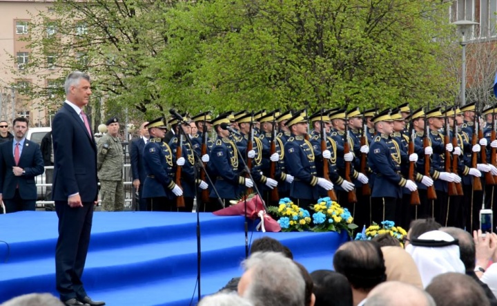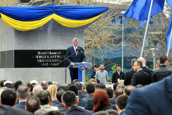 Son discours d’investiture est un modèle de symbolique démocratique. Prononcé sous la statue du héros national des Albanais du monde, Skanderbeg, qui au xve siècle s’opposa aux Ottomans, et entouré de drapeaux de la République du Kosovo et de l’UE, il déclama : « Un président humble dans une nation de héros »… Il faut savoir que dans les Balkans et l’Europe de l’Est, le mot héros désigne une personne valeureuse et non pas forcément l’auteur de faits de bravoure exceptionnels. D’ailleurs les héros qu’il cita sont des médecins, enseignants, agriculteurs, combattants, fonctionnaires, bref la société entière. Il a appelé à une société pluri-ethnique ouverte, un État laïc, et un ancrage européen et atlantiste. Il a même casé la cause des gays et lesbiennes, le LGBTI. Aussi, quelques propos conciliateurs furent adressés à la République de Serbie. Mais aucune référence à la nation sœur, l’Albanie ni à la religion, dans ce pays à majorité musulmane. À la cérémonie assistaient des notabilités sunnites, soufies, catholiques, mais aucun chef de la communauté serbe orthodoxe. C’est que la tentative du gouvernement kosovar d’entrer à l’Unesco a ulcéré ces derniers. En effet, leur immense parc architectural religieux serait passé d’une vague tutelle consensuelle de Belgrade à celle de l’État kosovar. Malgré l’échec de la candidature du Kosovo fin 2015, les rancœurs des chrétiens orthodoxes subsistent.