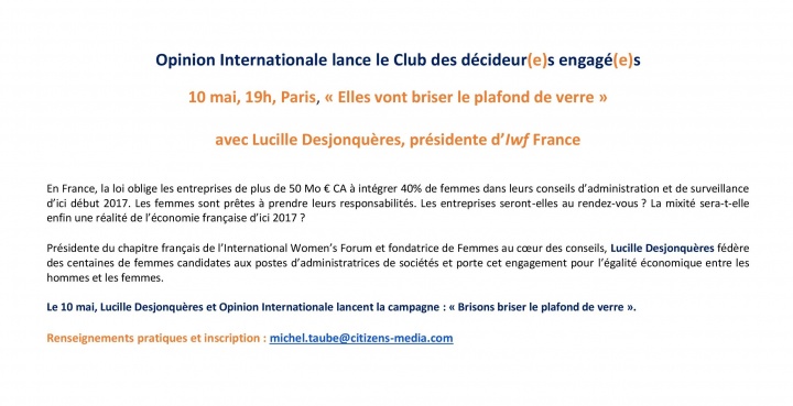 D’ici la fin de l’année 2016, selon la loi Copé-Zimmermann pour la représentation équilibrée des hommes et des femmes au sein des conseils d’administration et de surveillance, 40 % des membres des conseils d’administration (CA) des grandes et moyennes entreprises devront être des femmes. Cette « contrainte » bien que bénéfique est un défi pour les dirigeants d’entreprises. Où et comment recruter en si peu de temps ces quelque 10 000 femmes ? Lucille Desjonquères explique dans un entretien pour Opinion Internationale que les femmes sont prêtes à prendre leurs responsabilités.