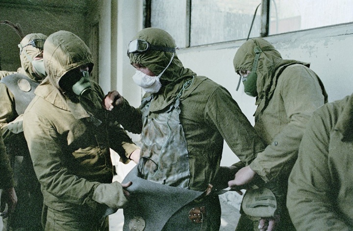La cellule de crise décida donc d’observer depuis le ciel le réacteur numéro 4. Le physicien Nesterenko, l’académicien Legassov, un pompier et un pilote survolèrent en hélicoptère le réacteur pour réfléchir au moyen d’éteindre le feu du cœur. Si Nesterenko et Legassov[4] survécurent, les deux autres moururent peu après leur exposition[5] le temps de ce survol.