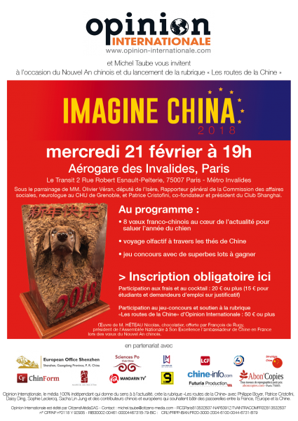 Mettre sur la gauche des deux prochains paragraphes l’affiche de l’événement que tu trouveras dans la bibliothèque d’images à partir de cet article : https://www.opinion-internationale.com/soiree-imagine-china-2018