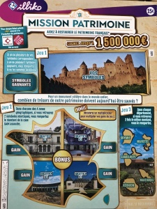 Mais pourquoi donc le jeu de grattage qui a été lancé il y a dix jours pour cette même cause est-il si cher ? 15 euros le ticket de MISSION PATRIMOINE, c’est quand même beaucoup. Est-ce à dire que la défense du patrimoine n’intéresserait que les joueurs aisés ? Le succès fulgurant des Journées européennes du patrimoine, lancées en 1984 par Jack Lang, aurait pu encourager la Française des Jeux à définir un tarif plus abordable.