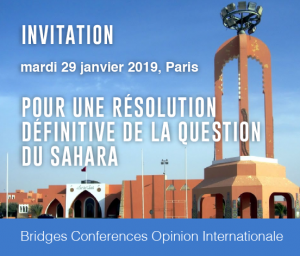 Opinion Internationale crée la rubrique « Maroc pluriel » et organise à Paris sa première « Bridges Conference » mardi 29 janvier (inscriptions ouvertes) sur le thème « Pour une résolution définitive de la question du Sahara » avec (par ordre alphabétique) SE M. Chakib Benmoussa, Ambassadeur du Maroc en France, Salah Bourdi, président du Cercle Eugène Delacroix, adjoint au maire d’Epinal-sur-Seine, Aymeric Chauprade, député européen, membre de la commission des affaires étrangères, de la délégation Maghreb UE, de la Commission interparlementaire pays ACP-UE au Parlement Européen, géopoliticien, Sidi Hamdi Ould Errachid, président de la région Laâyoune-Sakia Al Hamra, ou un de ses représentants, Philippe-Edern Klein, Président de la Chambre de Commerce et d’Industrie du Maroc, Naïma Moutchou, députée LREM, membre de la commission des lois et du groupe d’amitié France – Maroc de l’Assemblée Nationale française, Gilles Pargneaux, député européen, LREM, Michel Taube, fondateur d’Opinion Internationale, Hajbouha Zoubeir, membre du Conseil Economique, Social et Environnemental du Maroc.
