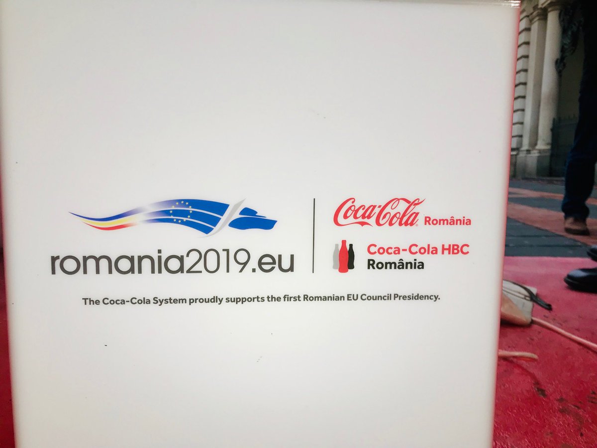 Lors de la réunion des ministres des Affaires étrangères de l’Union européenne à Bucarest le 31 janvier dernier, les participants ont été accueillis avec des panneaux indiquant que « le système Coca-Cola soutient fièrement la première présidence roumaine du Conseil de l’UE ». On pouvait voir aussi des poufs Coca-Cola, des pancartes publicitaires et bien sûr des boissons. Coca-Cola est l’un des rares partenaires « platine » de la présidence roumaine de l’Union européenne. L’organisation des brasseurs de bière roumains Berarii et d’autres entreprises sponsorisent également la présidence. Coca-Cola n’en est pas à son coup d’essai puisqu’elle avait sponsorisé la présidence polonaise en 2011.