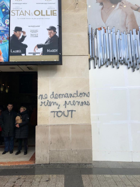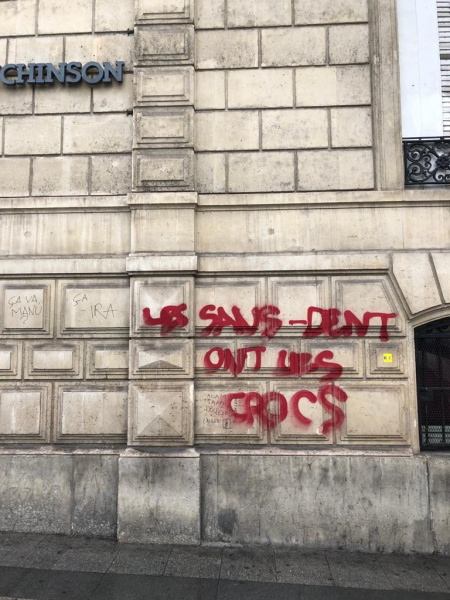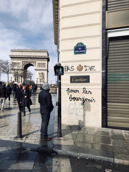 Le 16 mars ne fut pas qu’une journée de violence sur les Champs Elysées. Les gilets jaunes et les casseurs, ou les deux en même temps, s’en sont donnés à cœur joie en tapissant les murs de la plus belle avenue du monde de slogans qui expriment la philosophie, la démarche de ce mouvement. Sa violence intrinsèque n’est pas que physique, elle est politique, elle est symbolique. Un reportage photo… et parlant de Philippe Rosenpick.
