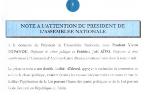 Il faut dire que le rapport des Professeurs Prudent Victor Topanou et Frédéric Joël Aïvo est explicite : il propose de réintroduire les partis traditionnels dans la course aux élections législatives et de reporter ces dernières du 28 avril au 12 mai, dernier dimanche avant la fin de la législature actuelle.