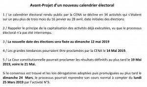 En revanche, ils sont clairs : « L’adoption des lois dérogatoires peut se suffire et permettre d’organiser, dans les délais constitutionnels, des élections inclusives. En revanche, si le temps du consensus et le réaménagement du calendrier électoral ne permettent pas d’organiser les élections et d’installer la 8ème législature dans les délais, il sera nécessaire d’envisager des mesures complémentaires ».
