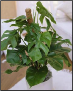 Absorbe: formaldéhyde, xylène et ammoniac (mousses d’isolation, colle des moquettes, émanation des imprimantes et des photocopieurs).