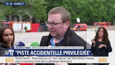 Puisqu’il n’y avait, nous dit-on, aucun ouvrier présent sur le chantier au moment où le feu s’est déclenché, la possibilité d’un mégot négligemment jeté par un intrus trop curieux ne peut être exclue. Pourtant, au micro de LCI, Benjamin Mouton, ancien architecte en chef de Notre-Dame de Paris, précise qu’enflammer du vieux chêne nécessite beaucoup de petit bois. Il rappelle en outre que l’installation électrique avait été refaite en 2010 et qu’elle répondait parfaitement aux normes, rendant d’autant plus improbable l’hypothèse du court-circuit. Il ajoute que des alarmes incendie étaient opérationnelles et qu’une surveillance était assurée jours et nuits par deux hommes.