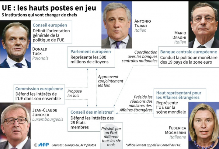 Difficulté supplémentaire : les chefs d’Etat et de gouvernement devront en outre trouver un compromis sur ce poste clé avec le nouveau Parlement issu des élections et qui entend imposer comme futur président de l’exécutif européen un candidat désigné par les partis avant ce scrutin.