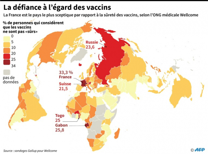 Un Français sur trois ne croit pas que les vaccins soient sûrs, selon une enquête mondiale publiée mercredi et qui fait de la France le pays le plus sceptique des vaccins parmi 144 étudiés.