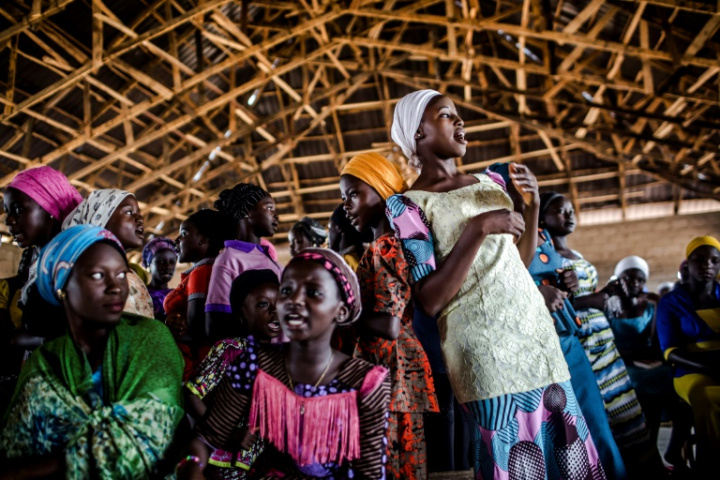 Un groupe de cultivateurs chrétiens danse et chante lors de la messe, le 14 avril 2019, à Kajuru, au Nigeria. AFP / Luis TATO