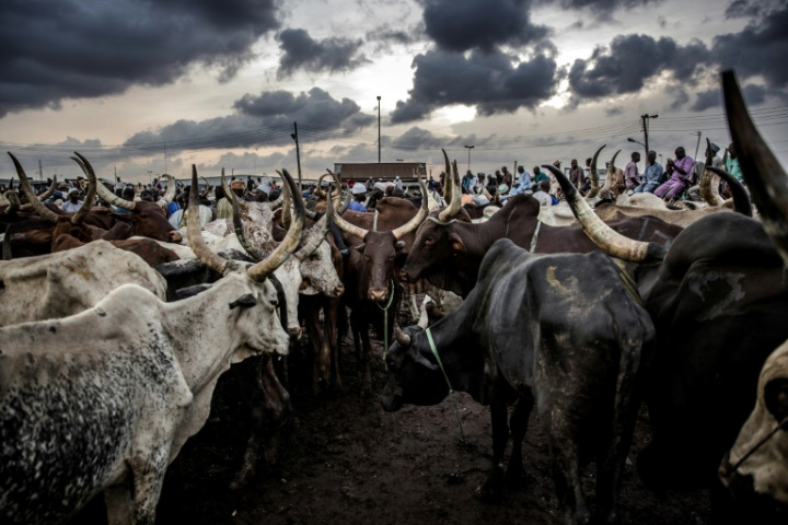 Des éleveurs avec leurs troupeaux, à Agege Market, le plus grand marché à bestiaux d’Afrique de l’Ouest, à Lagos, le 10 avril 2019. – AFP / Luis TATO