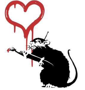 Le rat sort quand notre société est lâche pour en montrer ses travers. Le rat est libre, il est le témoin d’une certaine résistance. Les taggueurs et graffeurs sont en quelque sorte comme les rats et Banksy a expliqué qu’il peint des rats car les rats n’ont pas besoin de permission pour apparaître. Blek a inondé Paris de pochoirs et de stickers de rats qui surgissent là où on ne les attendait pas pour montrer la vivacité d’une certaine liberté d’expression dans une société trop corsetée. Le rat de Banksy ou de Blek est un poil à gratter, malin, agitateur, il est nous, le nous qui nous challenge et nous survit, cette partie de nous que l’on ne veut pas voir et qui nous répugne, ce nous de l’hypocrisie mais aussi ce nous qui pousse à nous transcender pour éviter le pire. Alors vive le rat… vive l’art. Vive le RatGraf… vive les street ratistes.