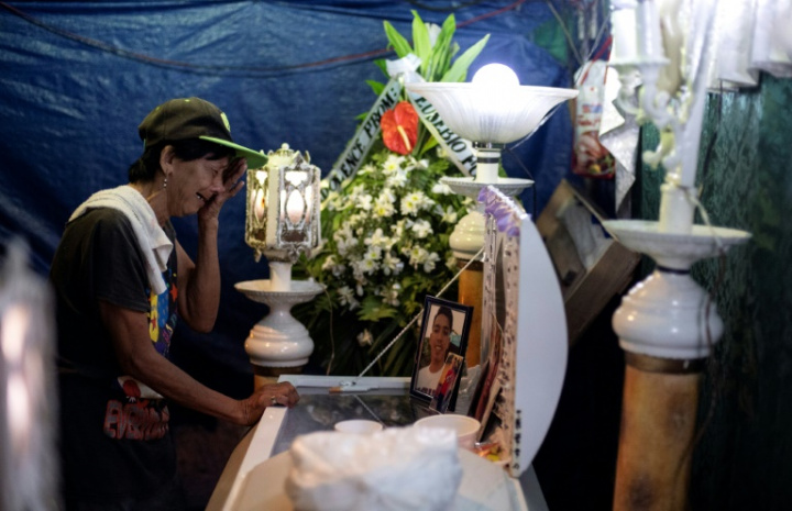 Lilia Jacobe pleure son petit-fils Bryan Conje, disparu le 2 juillet et retrouvé mort le 5 sous le pont où il vivait, le 7 juillet 2019 à Manille – AFP / Noel CELIS