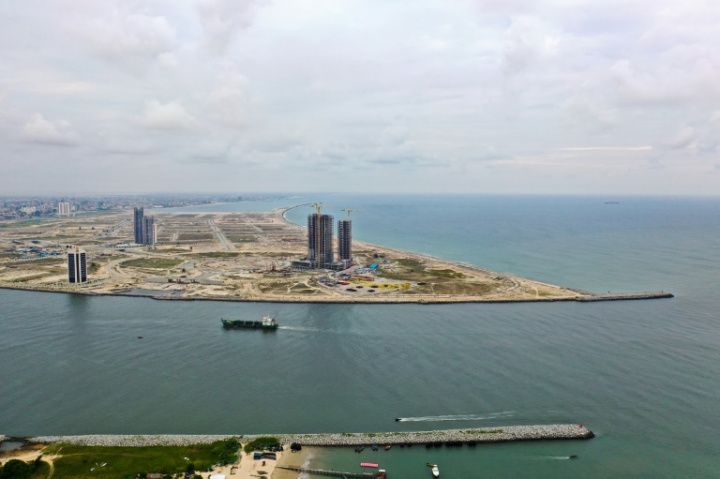 Vue aérienne du chantier du quartier Eko Atlantic à Lagos, le 11 juin 2019 – AFP / Moise GOMIS