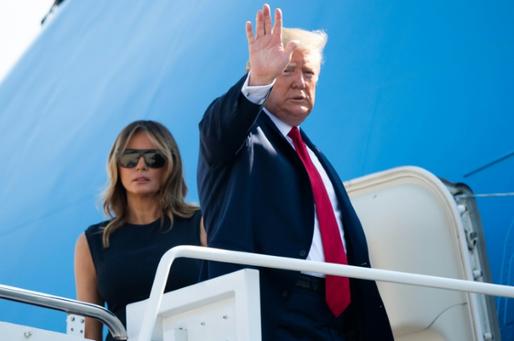 Donald Trump embarque dans l’avion présidentiel Air Force One avec son épouse Melania, le 7 août 2019 près de Washington – AFP / SAUL LOEB