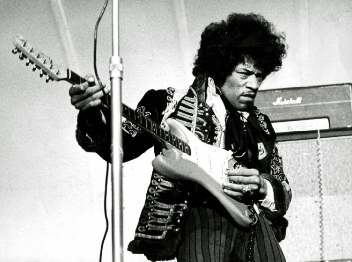 Jimi Hendrix, qui a joué une interprétation futuriste de l’hymne américain à Woodstock, ici le 24 mai 1967 à Stockholm, en Suède – TT NEWS AGENCY/AFP/Archives / –