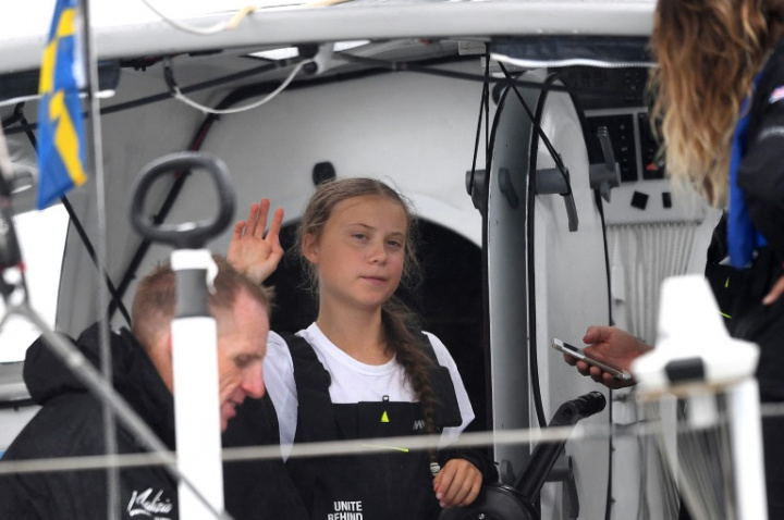 L’adolescente, désormais reconnaissable dans le monde entier à son visage poupin et ses longues tresses, avait alors embarqué avec son père à bord du voilier à zéro émission carbone Malizia II, skippé par Pierre Casiraghi, fils de la princesse Caroline de Monaco, et l’Allemand Boris Herrmann.