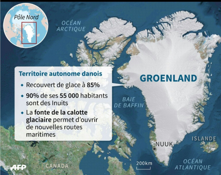 Carte du Groenland et éléments-clés du Territoire autonome danois – AFP / Sabrina BLANCHARD