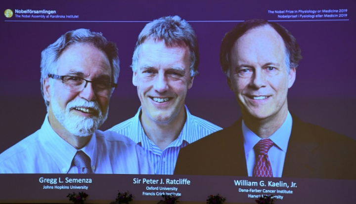Les chercheurs américains William Kaelin et Gregg Semenza et leur collègue britannique Sir Peter Ratcliffe ont été distingués par le prix de médecine pour avoir « révélé les mécanismes moléculaires à l’oeuvre dans l’adaptation des cellules à l’apport variable d’oxygène » dans l’organisme, a expliqué dans ses attendus l’Assemblée Nobel de l’Institut Karolinska à Stockholm, qui avait reçu 633 nominations cette année.