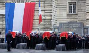 Dans la cour de la préfecture de police, le silence était pesant parmi les centaines de personnes rassemblées sous la pluie, face aux quatre cercueils recouverts du drapeau français installés devant le monument aux morts. Avant de prononcer son discours, M. Macron, accompagné du Premier ministre Edouard Philippe et des ministres de la Justice Nicole Belloubet et des Armées Florence Parly, est d’abord allé parler aux familles des victimes. Auparavant, son ministre de l’Intérieur a remis la Légion d’honneur, à titre posthume, aux quatre personnes tuées: Damien Ernest, major responsable d’une unité locale de police (28 ans de service), Anthony Lancelot, gardien de la paix (11 ans), Brice Le Mescam, adjoint administratif principal (6 ans) et Aurélia Trifiro, gardienne de la paix (17 ans).