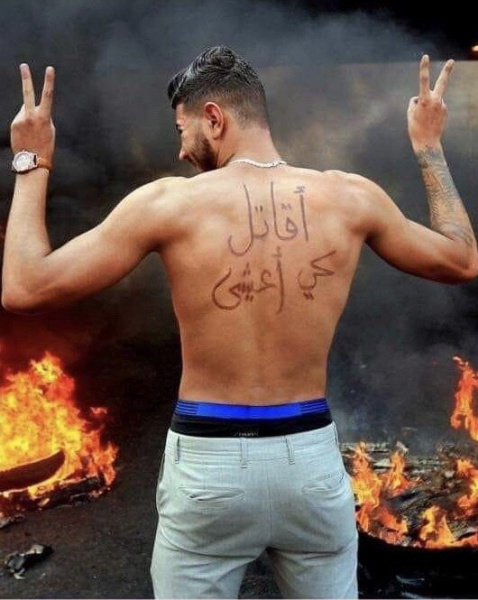 Le hashtag de la photo originale : ##أجرك_بالسلطة Littéralement « Ton pied sur l’autorité' » Expression libanaise qui veut dire #Contre ces autorités »