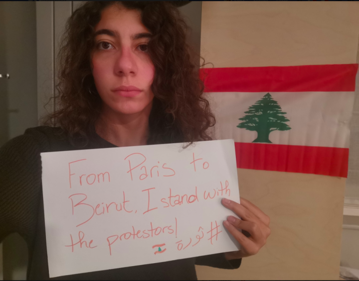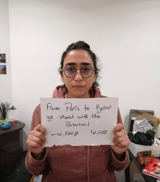Peu après le début des manifestations au Liban, la page Facebook « Libanais à Paris » propose de soutenir les Libanais sur place. Des photos de soutien circulent.