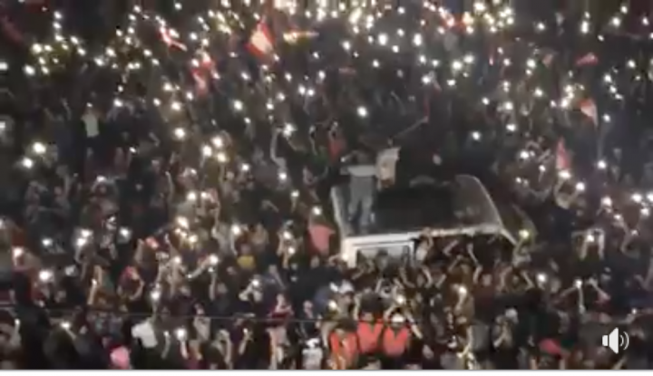 Une dame prend la parole en manifestation : « Je veux prendre la parole parmi ses jeunes parce que je suis une mère. J’ai 58 ans, j’ai élevé mes enfants de mes propres larmes. Et maintenant on veut me prendre mes enfants, ils partent tous les deux. Ils leur ont volé leur avenir. Où est-ce-que je vieillirais moi ? Mes deux enfants me laissent seule ici. » Et, en arrière plan, on entend Révolution, révolution… Puis sa fille prend la parole : « Il me reste encore deux mois maximum dans ce pays (…) J’ai 27 ans, ça fait 5 ans que j’ai fini mes études, je n’ai pas réussi à trouver du travail ni planifier mon avenir. Je leur laisse le pays et je m’en vais. C’est un pays qui ne respecte rien ! (…) Où sont les droits de leur peuple ? »