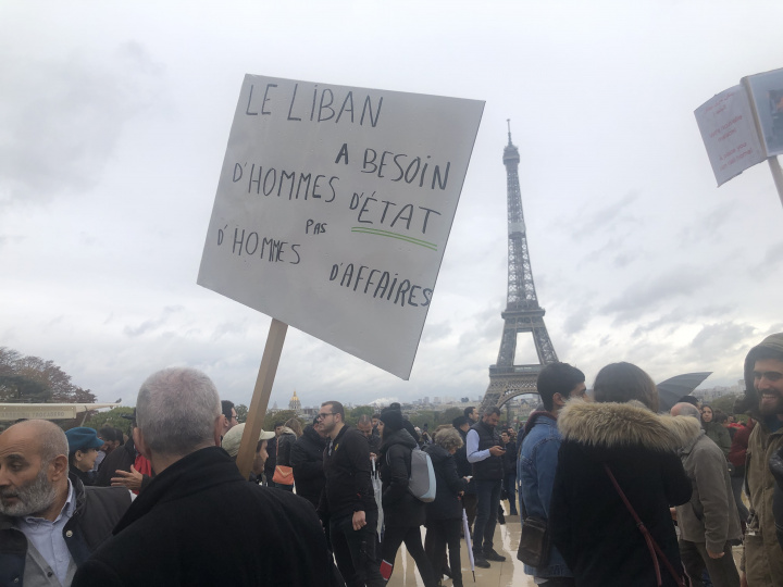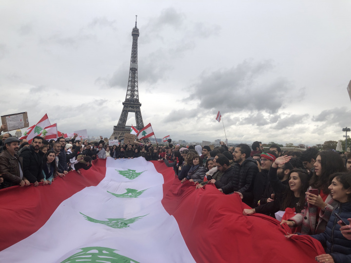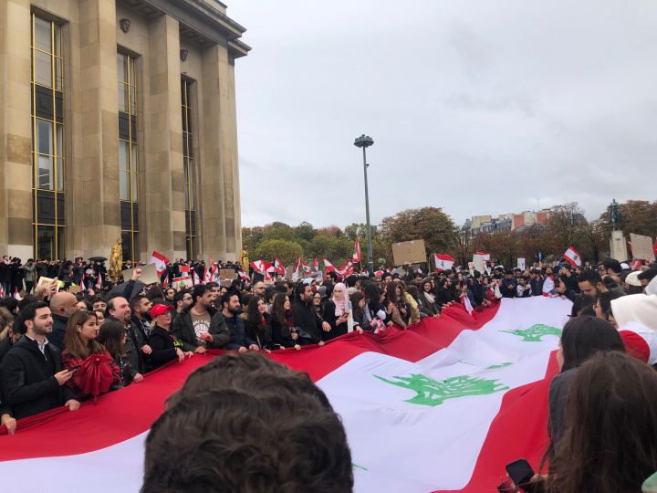 Le parvis des droits de l’homme du Trocadéro était noir de monde ce dimanche 20 octobre 2019. Noir n’est pas vraiment le terme : rouge et blanc dominaient avec des centaines de drapeaux libanais et des milliers de Libanais de la diaspora.
