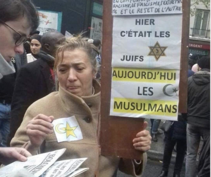 Nous reviendrons sur l’étoile jaune qui a circulé pendant la manifestation. Mais insistons d’emblée sur le fait que Marwan Muhammad a scandé « Allah Akbar ». En République laïque, on ne conclut pas une manifestation par une incantation religieuse, quelle qu’elle soit. C’est la signature finale de cette marche communautariste. La seule incantation qui aurait eu du sens, c’est la Marseillaise. Mais j’imagine que cette idée, si elle a effleuré les organisateurs, a dû être écartée !