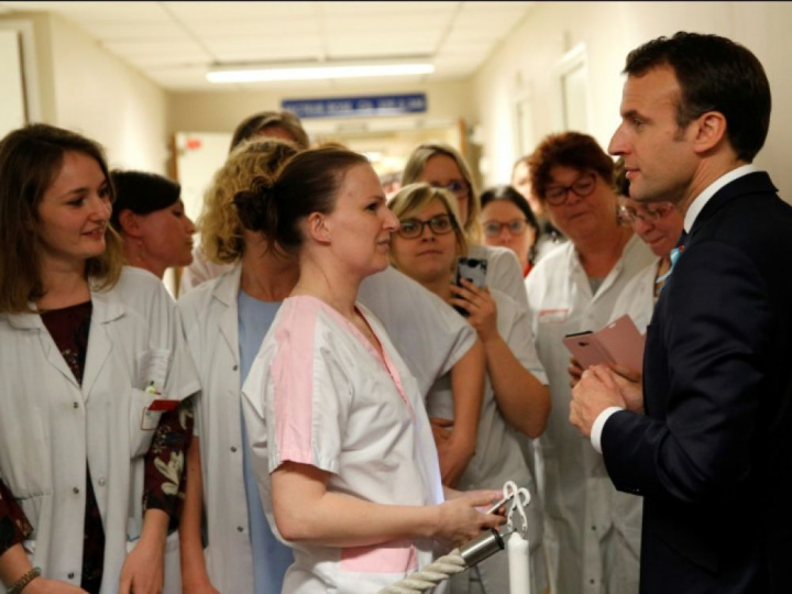 Emmanuel Macron à l’hôpital de Rouen en avril 2018 – AFP – Christophe Ena