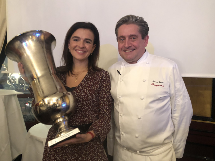C’est un Japonais qui a remporté le grand prix mais c’est la Tunisie qui était à l’honneur pour l’édition 2020 d’Olio Nuovo Days à Paris. Plusieurs producteurs tunisiens ont été primés : PARCELLE 26, produite par Laurence [notre photo avec le chef du Fouquet’s, Bruno Guéret] et Michaël Zeitoun dans la région de Zaghouan, et OLEASTRA, de Raya Abid, dans la région d’Uttique. Sans oublier d’autres compétiteurs de France avec l’excellent Château l’Insouciance à Caoudas près de Nîmes d’Olivier Naslès, d’Italie, de Turquie et d’Algérie (dont l’excellente huile des Joyaux de Sherazade).