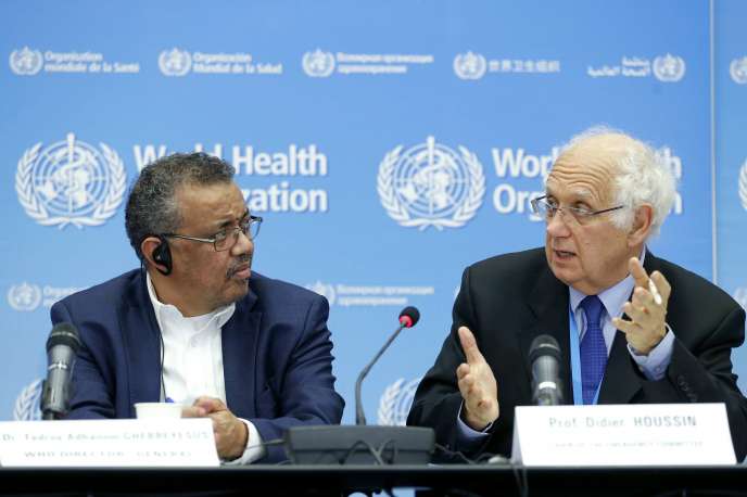 Tedros Adhanom Ghebreyesus, DG de l’OMS, et le président français du comité d’experts Didier Houssin. Pierre Albouy / AFP