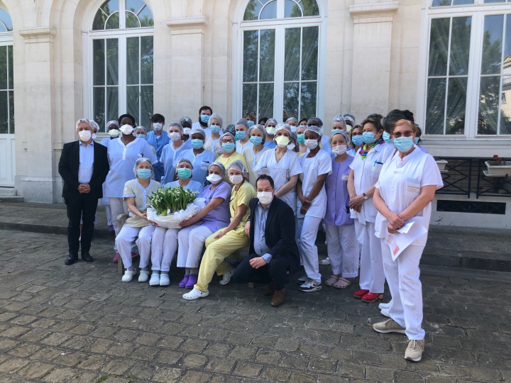 La Maison Ferrari [notre photo], Ehpad à Clamart dans le 92, qui appartient au très respectable Ordre de Malte, son directeur Louis Matias, les cent vingt soignants et accueillants qui prennent en charge cent-soixante personnes âgées, nous ont reçu les bras ouverts. Nos clochettes de muguet raviront les hôtes de ce haut lieu de l’histoire de France, où naguère la Duchesse de Ferrari, qui posséda et vécut à l’Hôtel Matignon, fit construire ce magnifique bâtiment destiné à la fin du XIXème siècle à la retraite de gens de maison, Cet Ehpad appartient au réseau des établissements médico-sociaux membres de la FEHAP (Fédération des Etablissements Hospitaliers et d’Aide à la Personne), organisation de référence du secteur privé non lucratif présidé par Marie-Sophie Desaulle et dont Antoine Perrin est le directeur général.
