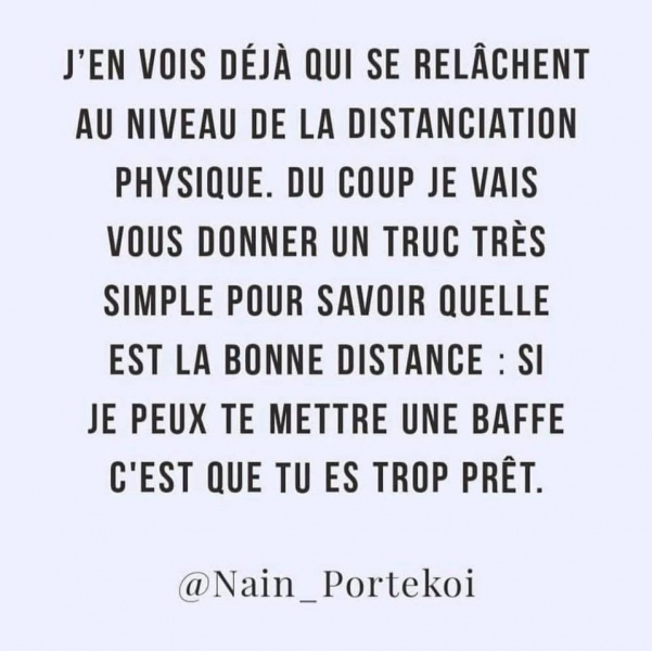 Avec le strict respect des gestes barrière (port du masque inclus), un peu d’humour décuple nos forces pour réussir le déconfinement et repousser le coronavirus.