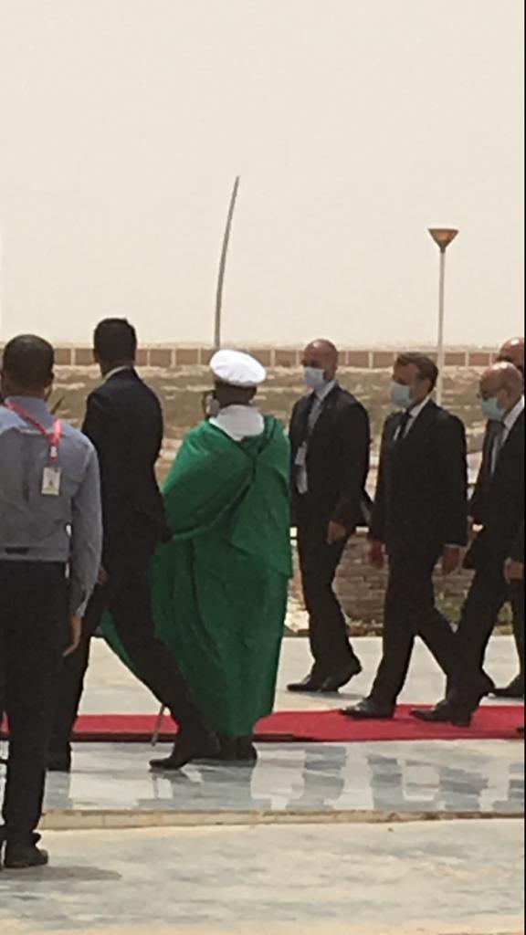 A Nouakchott en Mauritanie, où il est arrivé dans la journée pour le Sommet du G5 Sahel (déplacement crucial et salutaire qu’il faut saluer vue la présence française dans la région dans le cadre notamment de l’opération Barkhane), le président de la République portait un masque !