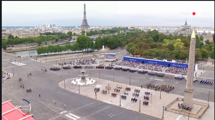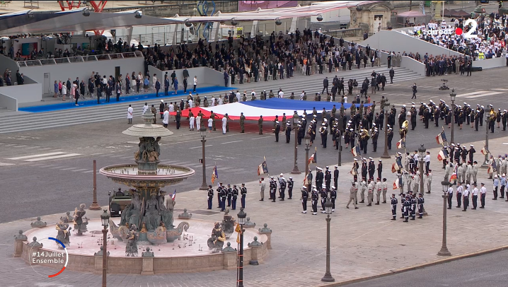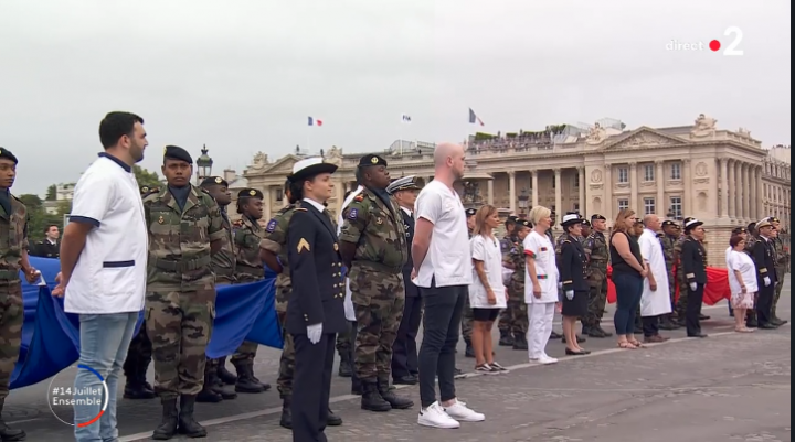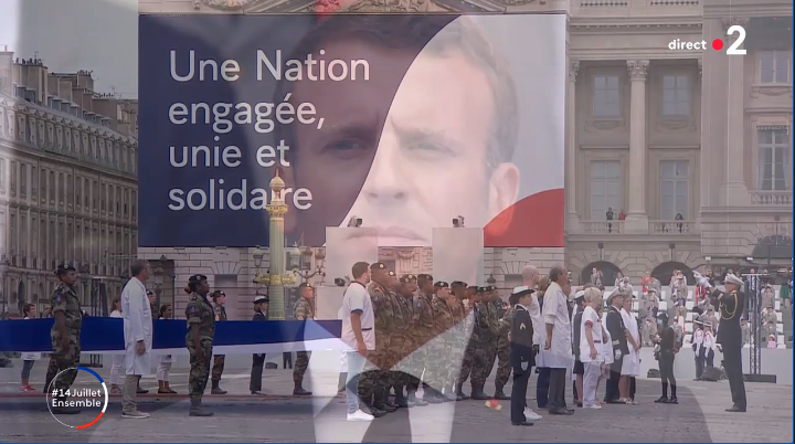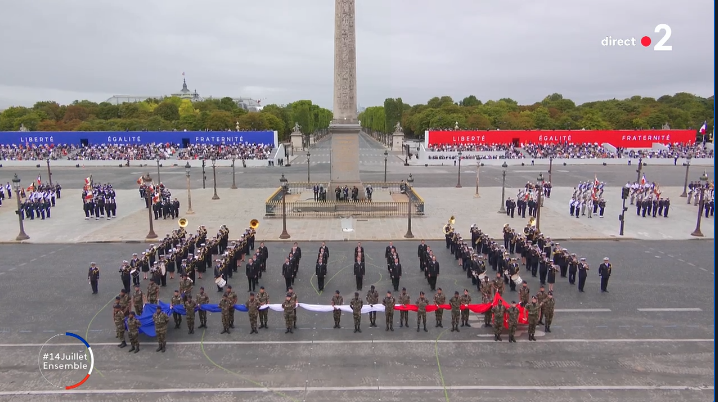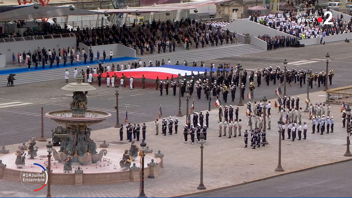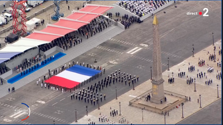 Nouveau décor, nouveau contexte : c’est la Place de la Concorde qui accueillait hier la parade (et non le défilé) militaire associée à des personnes soignants et des premiers de cordée (et non de corvée) pour célébrer la Fête Nationale du 14 juillet 2020.