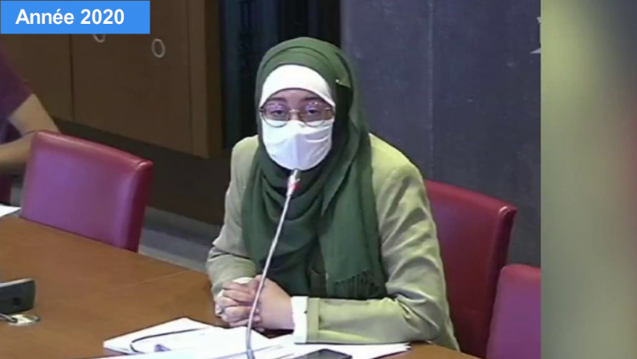 Vous l’aurez reconnue sur la troisième photo : aujourd’hui, en France, l’étudiante la plus médiatisée est Maryam Pougetoux, vice-présidente et porte-parole du syndicat étudiant UNEF, qui arbore avec provocation son hidjab (et non un discret voile traditionnel) à l’Assemblée nationale et sur les plateaux de télévision. Signe que l’islam politique ne recule devant aucune outrecuidance, aucune provocation, elle se présenta dimanche 18 octobre à la manifestation « contre la haine », en mémoire à Samuel Paty, Place de la République à Paris. Lors de sa prise de parole, elle fut copieusement chahutée, accusée d’être « collabo » (terme que nous avons employé pour expliquer pourquoi nous ne nous y sommes pas rendu) et de « traître à la laïcité ».