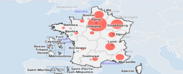 La carte ci-dessous comptabilise les décès des hommes et femmes depuis le premier mars 2020 jusqu’au 3 novembre 2020. C’est simple à lire, en tirant une verticale de Rouen à Toulouse : L’Ouest est préservé, l’Est subit.