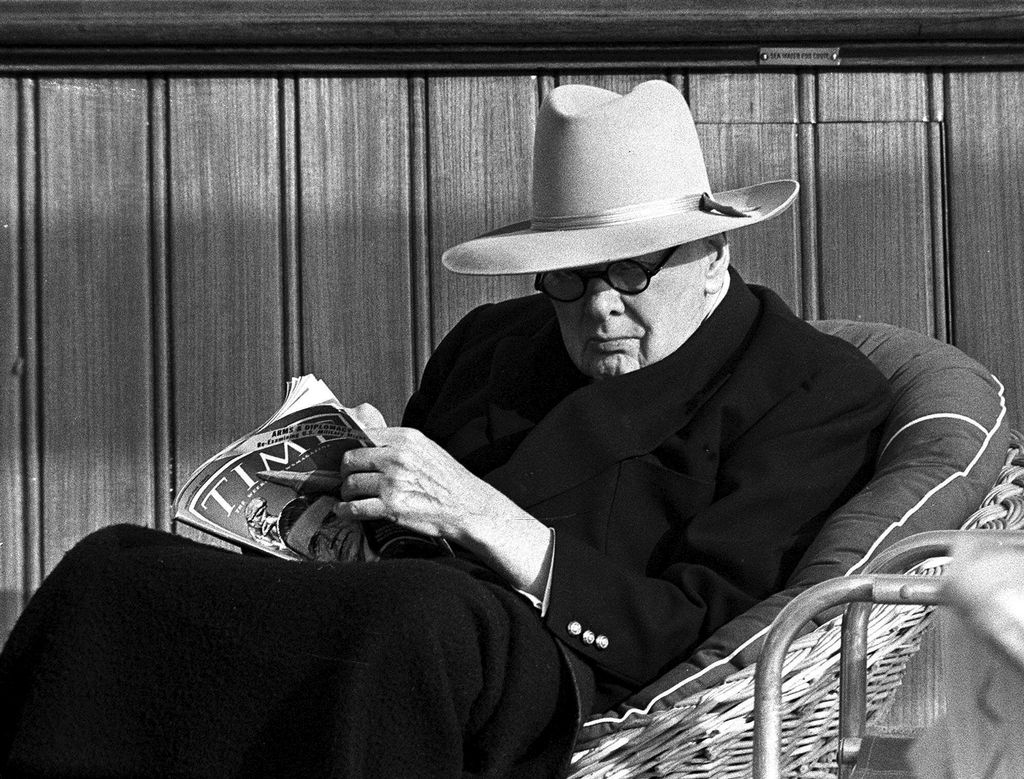 Agé de 70 ans au moment de la guerre, le descendant des Ducs de Marlborough, ancien grand reporter, Prix Nobel de littérature (1953) et peintre, pouvait travailler près de 16 heures par jour.