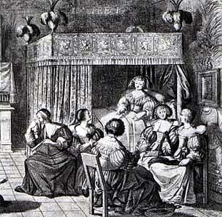 La marquise de Sévigné écrit ses lettres depuis sa couche, maintenue assise, confortée d’une masse de traversins, d’oreillers, et grâce à un pupitre qu’elle se fait porter pour y rédiger œuvres ou missives galantes. Les Précieuses Ridicules de Molière, quelques décennies plus tard, seront peuplées de ces cénacles où le bel esprit n’a d’autre rival que la résistance à la lourdeur des temps, l’écrasement des libertés qui porte la marque de Richelieu, de Louvois, et des monarques qu’ils courtisent.