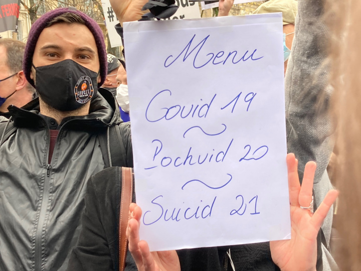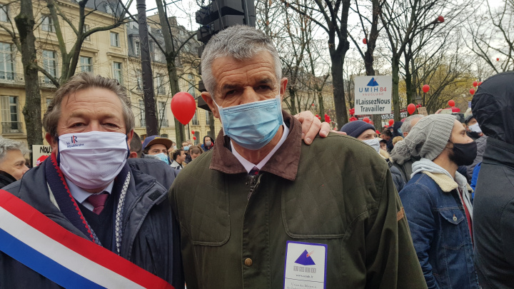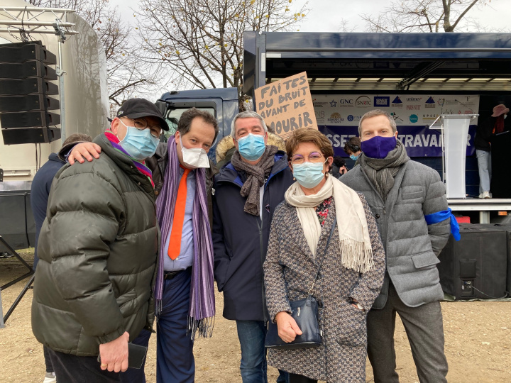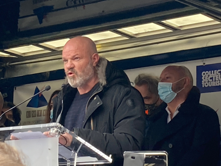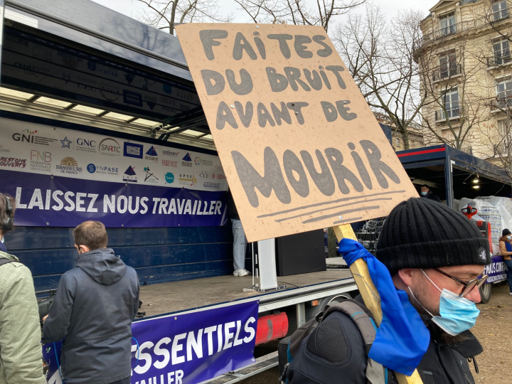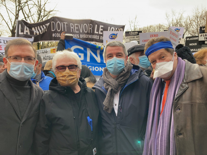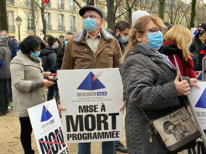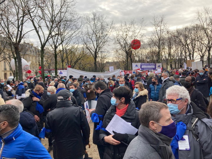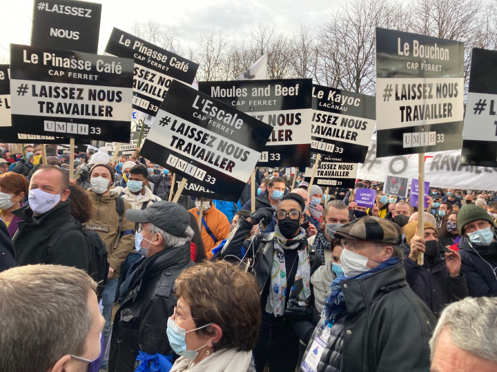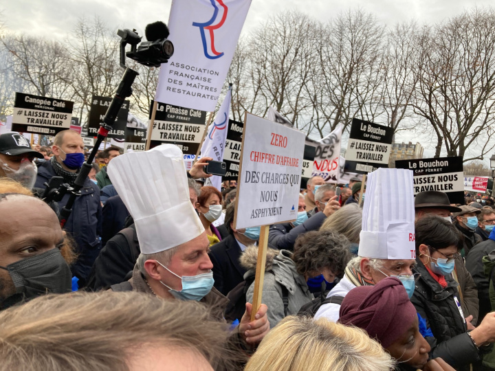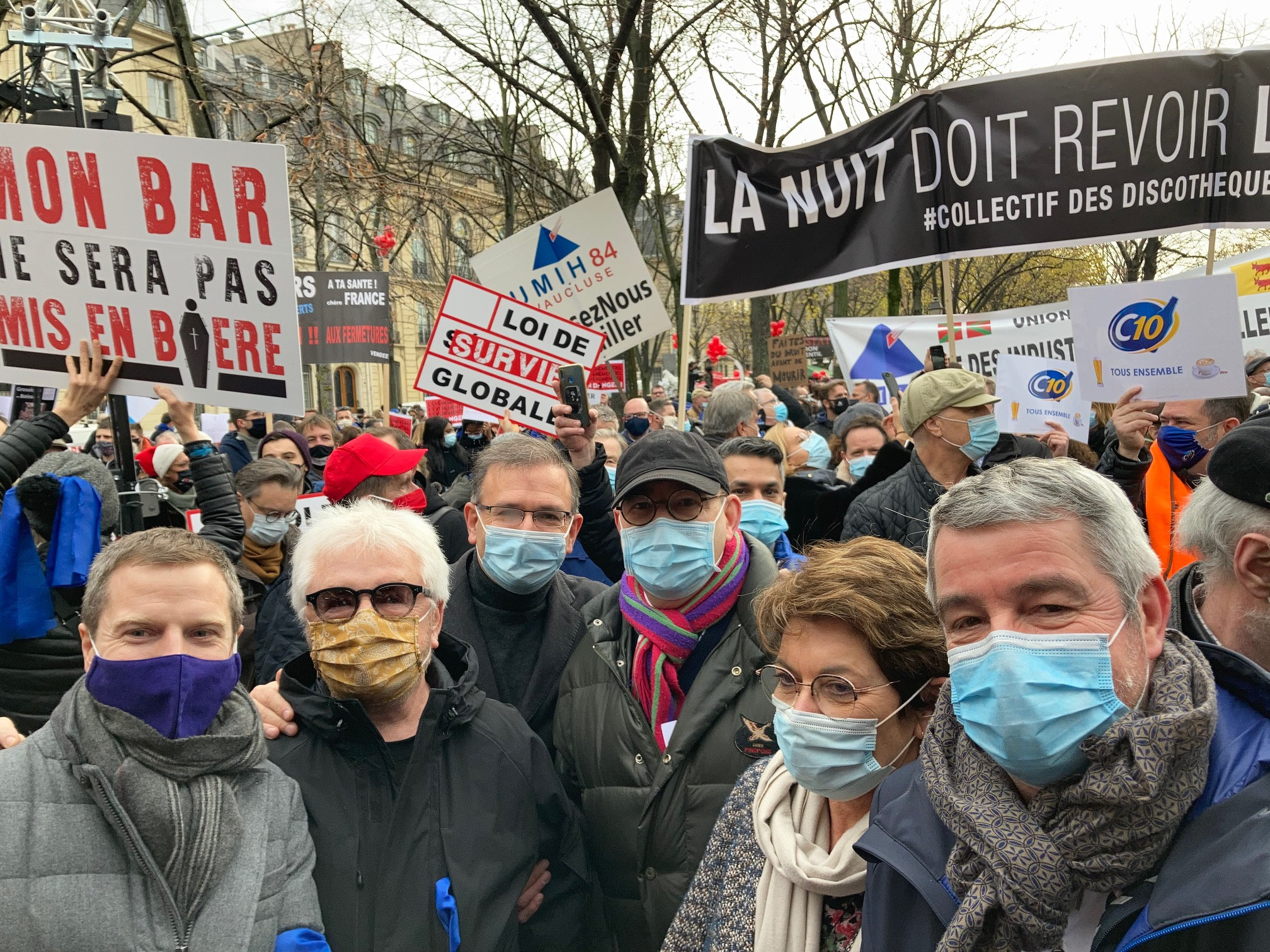 Ils étaient des milliers aux Invalides, emmenés par un Philippe Etchebest fort remonté, patrons et salariés de la restauration, de l’hôtellerie, du monde de la nuit, rejoints par les artistes et professions des arts et de la culture, par le monde de la santé représenté par Daniel Guillerm, président de la Fédération Nationale des Infimiers, Frédéric Loup, ami de nombreux artistes et amoureux de la nuit, et Yorick Berger, dirigeants de la Fédération des Syndicats Pharmaceutiques de France, et Opinion Internationale représenté par Michel Taube et Florence Deparis.