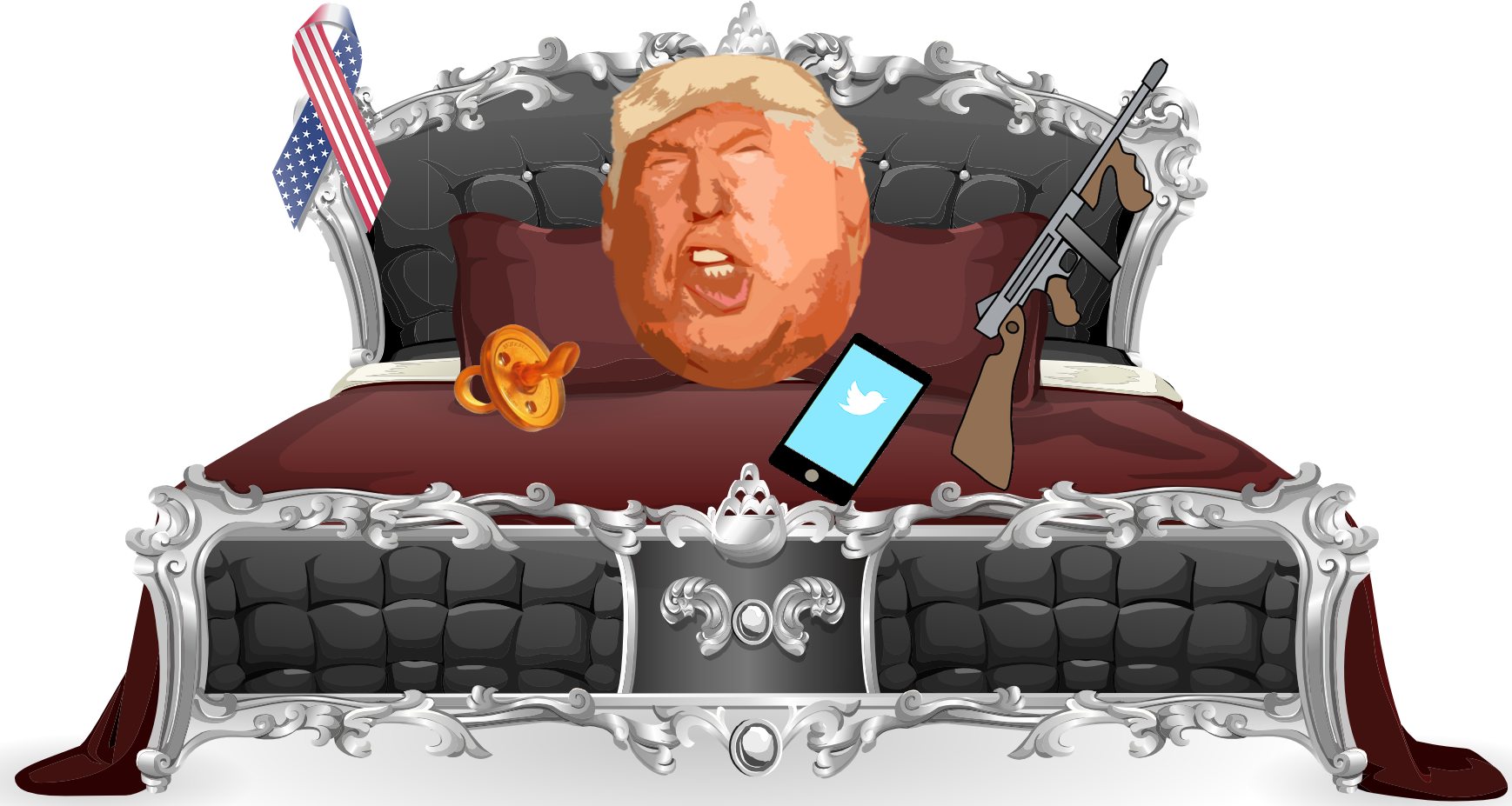 Donald au lit, ce fut là qu’il passa une bonne partie de son mandat de chef du monde libre, à tweeter frénétiquement devant la télévision, en mangeant de quadruples cheeseburgers.
