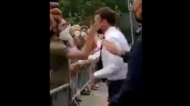 En déplacement dans la Drôme dans le cadre de son « Tour de France des territoires », Emmanuel Macron a été giflé par un homme, issu de la mouvance des gilets jaunes pour les uns, appartenant à la mouvance d’extrême droite pour les autres, à en juger par le cri entendu au moment des faits : « Montjoie Saint Denis. À bas la Macronie ! »
