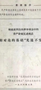 La révolution culturelle n’est jamais loin, car les tisons sont toujours là. Il y a quelques jours, un professeur d’une université anonyme de province a annoncé une nouvelle sensationnelle : grâce à la philosophie marxiste, il a réussi à renverser la théorie d’Einstein sur la relativité ! Mais il n’a rien inventé ! Cette théorie fut déjà remise en cause en 1968 par des scientifiques chinois à la lumière de la Pensée de Mao !