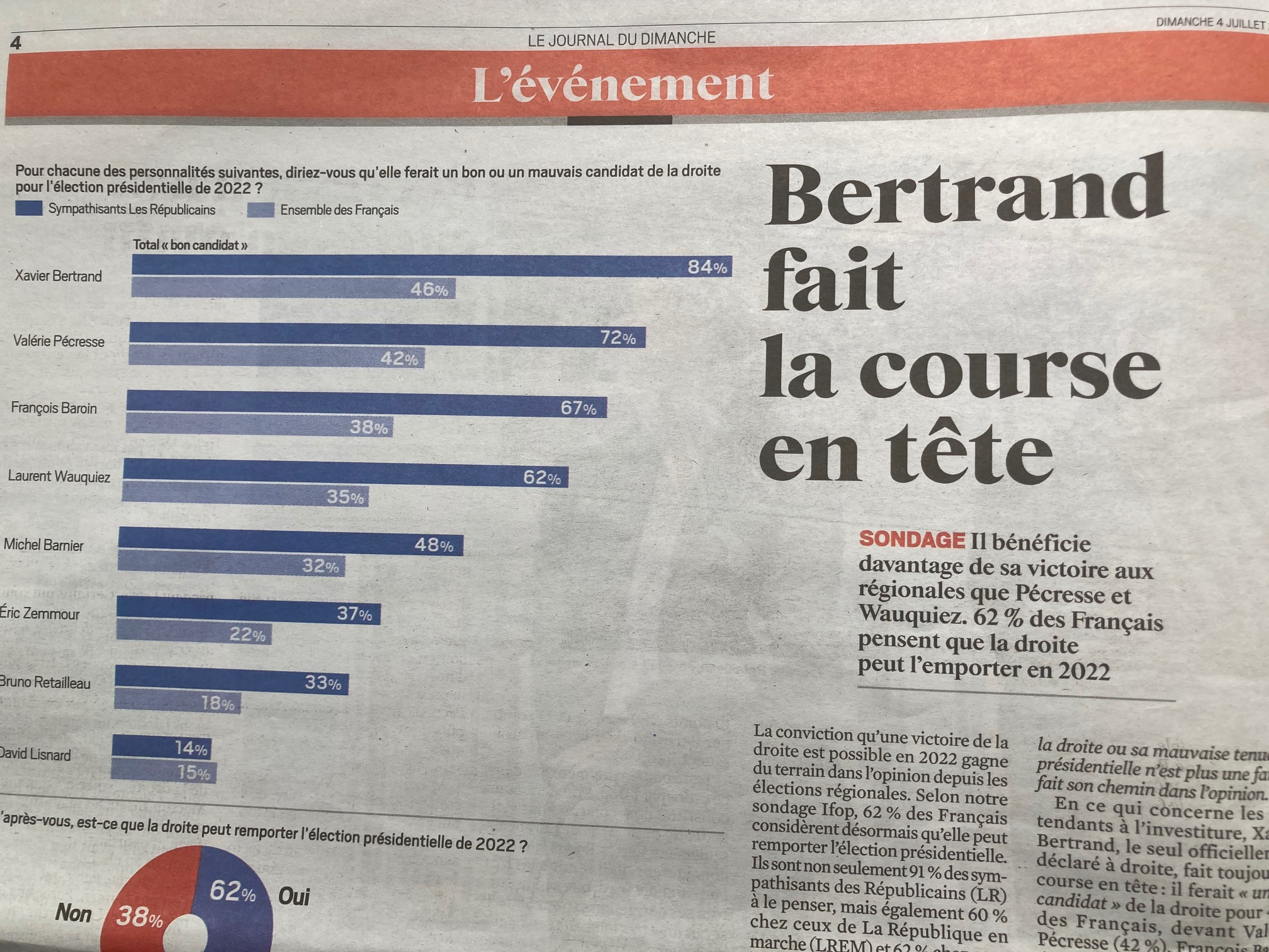 La clé, ce n’est pas le président des Hauts-de-France qui la détient : Laurent Wauquiez, qui a siphonné les voies de l’extrême droite dans sa région Auvergne-Rhône-Alpes, comme Nicolas Sarkozy avait su le faire lors de la présidentielle de 2012, et Valérie Pécresse, réélue en Île-de-France en dépit du maintien de la liste LREM (le front républicain, c’est pour les autres !) vont-ils renoncer à se lancer dans la bataille ? Ou gagner du temps pour préparer leur candidature ?